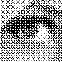 One day in 1988 I was sitting in the cafeteria at Xerox PARC, eating lunch and reading a book I had ordered through the PARC library - Jacques Vallée's Messengers of Deception: UFO Contacts and Cults. At that time I was working in PARC's Electronic Document Lab on the problem of perceptually correct digital color printing - something we all take for granted now, in these latter days of cheap color inkjet printers. I had spent much of the preceeding five years, on and off, thinking about printing; halftoning algorithms, Floyd-Steinberg error diffusion, inks, toners, the use of spectroradiometers, and human color perception. The team I worked with had a lab that was painted spectrally flat gray with a reflectance of 11%, and special daylight fluorescent lamps that simulated high quality sunlight - "The Gray Lab". As I sat there reading two scientists were sitting next to me at the table, excitedly discussing the possibilities of "hypering" documents back to computer files. One of them exclaimed "...and we can put a bar code on the bottom of every page that points back to the electronic document!!!" This utterance penetrated through my study of the book, and stirred me from my dogmatic slumbers - I had studied the history of printing and typography; I had designed digital type; I cared deeply about the appearance and elegance of documents... so I looked up and blurted "THAT would be FUGLY!" I was thinking, you see, about the Universal Product Code barcodes - which are large, and quite visually intrusive. Suddenly an idea flashed. It was simple, and elegant - conventional halftoning is based on little dots - which were usually ellipses of various sizes, oriented at a 45 degree angle (a subtlety based on the visual cortex's distribution of angle detectors... angled ellipses are less perceptually intrusive - except to certain African tribes that grow up in rounded architectures rather than Western Cartesian architected buildings). Digital halftoning aped analog halftoning, which was based on optical screens of repeated patterns - and all the little elliptical dots in a picture, such as a newspaper picture, always leaned in the same direction. My insight was under computer control this did not have to be true; you could make the little dot lean left to represent a zero, and to the right to represent a one - and that this would be essentially perceptially invisible. You could put computer data into a picture, hidden from conscious view. This sort of hidden data in pictures is called "steganography".
