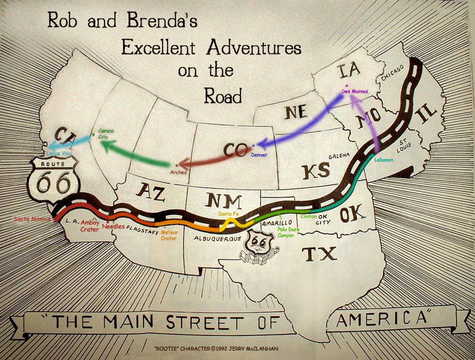 Get your clicks on Route 66 (mouse over the colored segments on the map below, and find the hot links to our pictures)